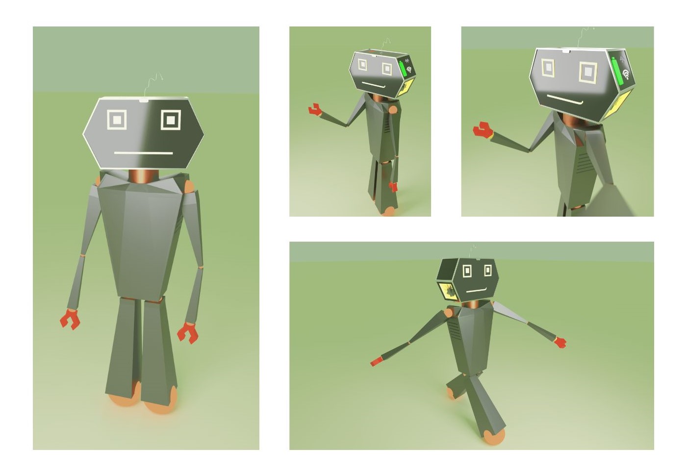 Маскот Роботаник ...Это робот-подросток, он любознательный и всегда готов помочь друзьям. Голова робота - монитор, на котором показываются его эмоции; с помощью своих электронных часов он перемещается в цифровом пространстве, а кибер-перчатка позволяет ему управлять цифровыми объектами